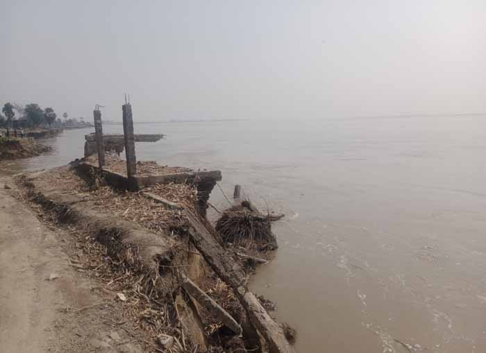 16 अक्टूबर 2025 को जब इस संवाददाता ने इस गांव का दौरा किया तब भी गंगा से तटों का तीव्र कटाव जारी था और ग्रामीण कटाव की तीव्रता को कम करने का उपाय कर रहे थे।