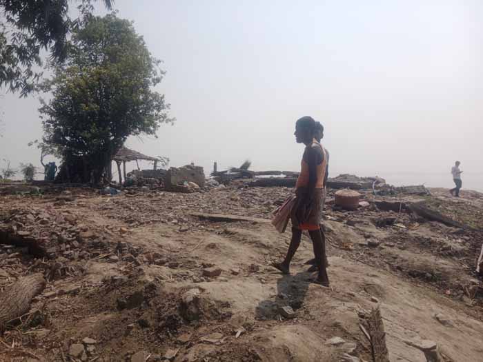 अवधेश राय उस जगह को निराशा से देखते हैं जहां पहले उनका मकान हुआ करता था और अब वह जमीन नदी का हिस्सा है। गंगा में बिलकुल हाल में समाये ऐसे कुछ मकानों के निशान भी नजर आते हैं, जिसके पीलर या दीवार के अंश दिख जाते हैं।