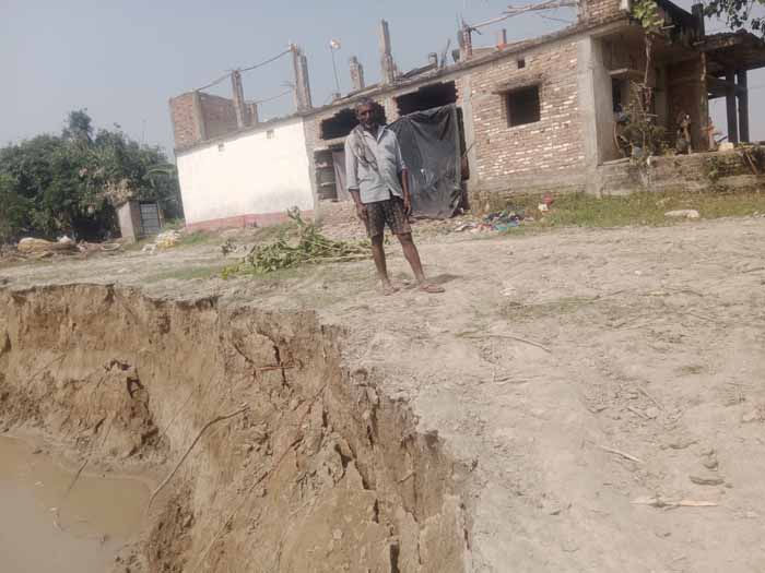 55 वर्षीय लालबाबू राय बताते हैं कि इस साल 25 सितंबर से इस गांव में कटाव शुरू हुआ और दो अक्टूबर तक वह काफी तेज रहा, हालांकि उसके बाद भी कटाव जारी है, लेकिन उसकी गति थोड़ी कम हुई है। लालबाबू राय चार भाई हैं और सभी कटाव से प्रभावित हैं। अवधेश राय उनके छोटे भाई हैं।