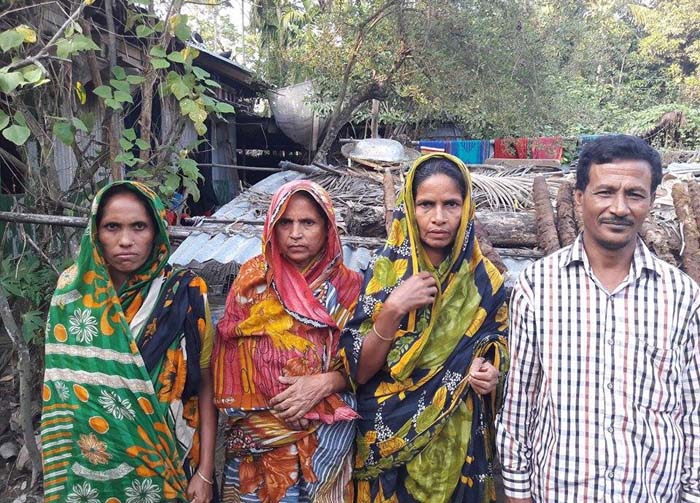 चार लॉरेंस गाँव के अब्दुल मलिक, जिन्होंने चक्रवात में अपने पिता को खो दिया। साथ ही तसवीर में दिख रही हैं तीन महिलाओं ने अपने ससुराल के कई परिजनों को खो दिया। फोटो क्रेडिट – रफ़ीकुल इस्लाम मोंटू।