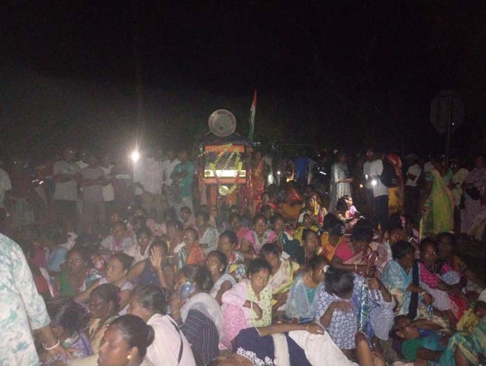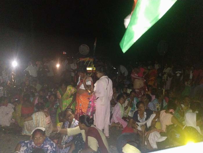 रात में आंदोलन के दौरान महिला चाय मजदूर।