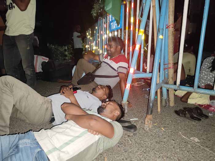 बोनस की मांग को लेकर मजदूर आंदोलन के दौरान सड़क पर ही रात गुजार रहे हैं।
