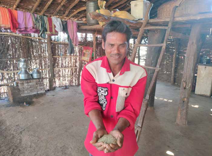 वे कहते हैं, “मेरे जैसे छोटे किसान के लिए यह नुकसान उठाना मुश्किल है। लेकिन नुकसान की आशंका के बाद भी यहाँ के किसान हाइब्रिड बीज से ही खेती करते हैं, क्योंकि उसे बाजार में एमएसपी न्यूनतम समर्थन मूल्य पर बेचा जा सकता है। पुराने मोटे अनाज को केवल खाने के उपयोग में इस्तेमाल करते हैं”।
