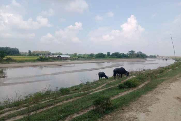नेपाल के सप्तरी जिले में नदी के तट पर चरते पशु। फोटो – राहुल सिंह।