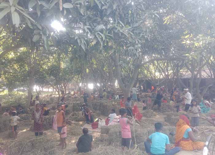 परबल की खेती के लिए बंडल बनाने में बड़ी संख्या में महिलाएं एवं बच्चे काम करते हैं। 100 बंडल बांधने का उन्हें 10 रुपये मेहनताना मिलता है।