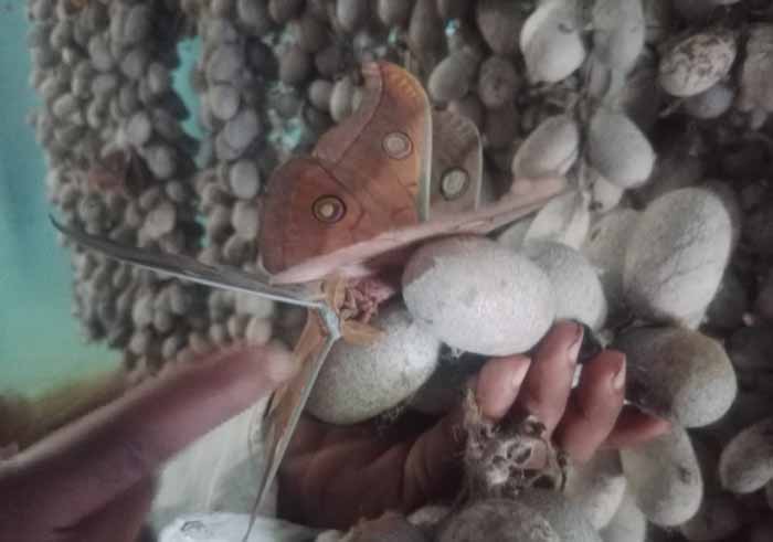 एक तितली 200 तक अंडा एक बार में देती है। उसकी पहले उसके पंख काट दिए जाते हैं, पंख काटने के बाद वे तीन दिनों तक अंडा देती है और करीब छह दिनों बाद अंडा से कीड़ा निकलता है। कोकून से तितली निकलने के बाद वह आठ से नौ दिन तक जिंदा रहती है।