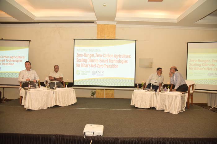 पटना: टाटा कार्नेल इंस्टीट्यूट फॉर एग्रीकल्चर एंड न्यूट्रिशन ने बिहार में खेती को अधिक उत्पादक एवं पर्यावरणीय रूप से टिकाऊ बनाने का एक रोडमैप प्रस्तुत किया है। सेंटर फॉर सस्टेनेबल ट्रांजिशन एंड रिजिलियंस द्वारा संयुक्त रूप से 16 अक्टूबर को पटना में आयोजित एक राउंड टेबल चर्चा में टीसीआई के शोधकर्ताओं ने संस्थान की परियोजना शूून्य भूख, शून्य कार्बन खाद्य प्रणाली जीरो हंगर, जीरो कार्बन फूड सिस्टम के परिणामों को प्रस्तुत किया, जिसका उद्देश्य बिहार में कृषि उत्पादन में वृद्धि करते हुए संबंधित ग्रीनहाउस उत्सर्जन को कम करना है।