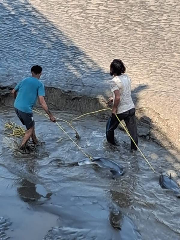 डॉल्फिन लो टाइड की वजह से एक छोटी-खाड़ी में फंस गयीं और वापस समुद्र में नहीं जा रही थीं, उनकी ऐसी स्थिति देख स्थानीय कर्मी उनका रेस्क्यू करने आए और मुश्किल जगह पर पहुंच कर उन्हें वापस समुद्र में पहुंचाया।