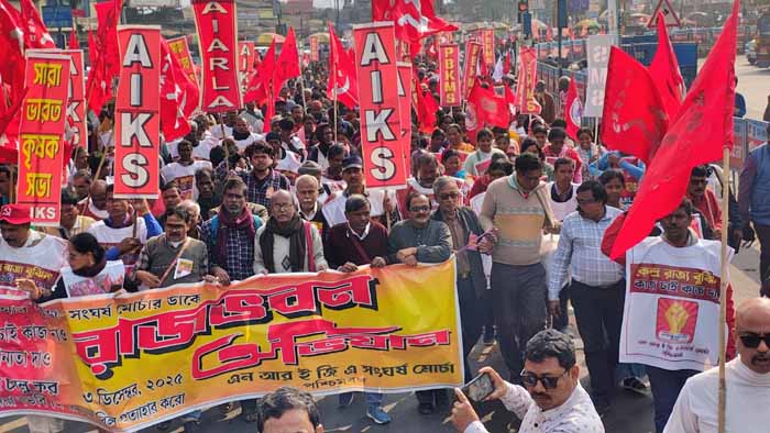 इससे पहले पश्चिम बंगाल की राजधानी कोलकाता में जन संगठनों ने मनरेगा को खत्म कर सरकार द्वारा नया कानून लाये जाने के खिलाफ 23 दिसंबर को सड़कों पर प्रदर्शन किया और राजभवन मार्च किया। नरेगा संघर्ष मोर्चा ने एक बयान जारी कर कहा है कि इस प्रदर्शन में करीब 10 हजार ग्रामीण कृषि मजदूर शामिल हुए और केंद्र के फैसले का विरोध किया है।