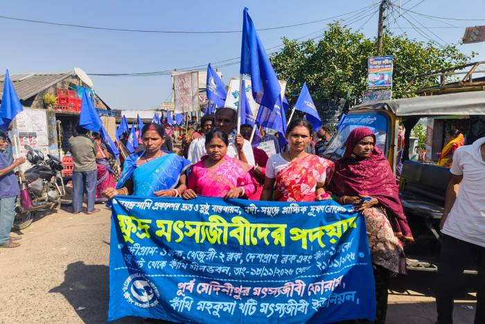 मछुआरा संगठनों ने अपने बयान में कहा है कि पूरब मेदिनीपुर जिले के छोटे मछुआरे विश्व मत्स्यकी दिवस के मौके पर समुद्र के तट पर मार्च कर रहे हैं और छोटे पैमाने पर मछली पालन की और नीति के लिए लोगों का समर्थन जुटा रहे हैं। हमारा नारा है पानी की रक्षा करो, तट की रक्षा करो और तटीय इलाकों के मछुआरों की रक्षा करो। ऐसी यात्रा इस साल 18 नवंबर से शुरू की गई थी। 1997 में 21 नवंबर को पर्यावरण के अनुकूल व वहनीय मछली पालन की पहचान और अपील के लिए अंतरराष्ट्रीय मत्स्यकी दिवस घोषित किया गया था।